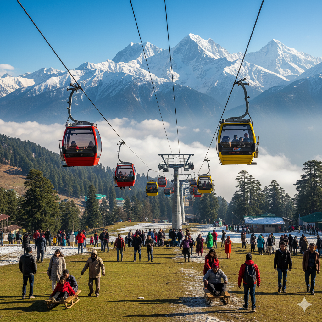 Gulmarg, located in the heart of Kashmir, is one of India’s most spectacular mountain destinations. Surrounded by towering Himalayan peaks, it offers year-round beauty—lush green meadows in summer and pristine snow in winter. Travelers flock to Gulmarg for its world-renowned skiing slopes, Asia’s highest Gondola cable car, and breathtaking views from every corner. Whether you’re seeking adventure, relaxation, or simply the charm of nature, Gulmarg promises an unforgettable experience.